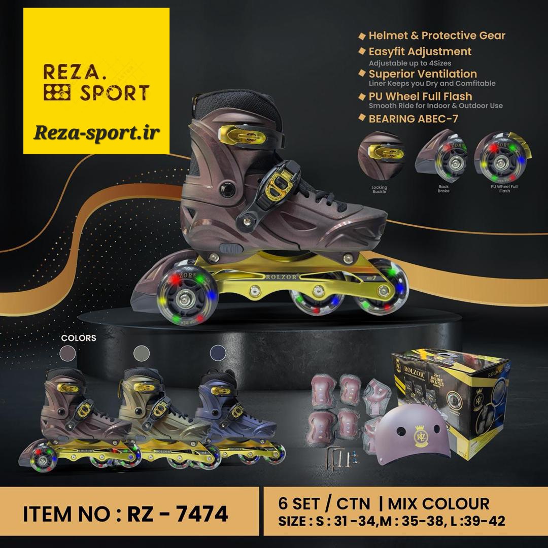 کفش اسکیت مناسب مبتدیان و حرفه ای ها برند Rolzor کد 2600 / با تجهیزات ایمنی