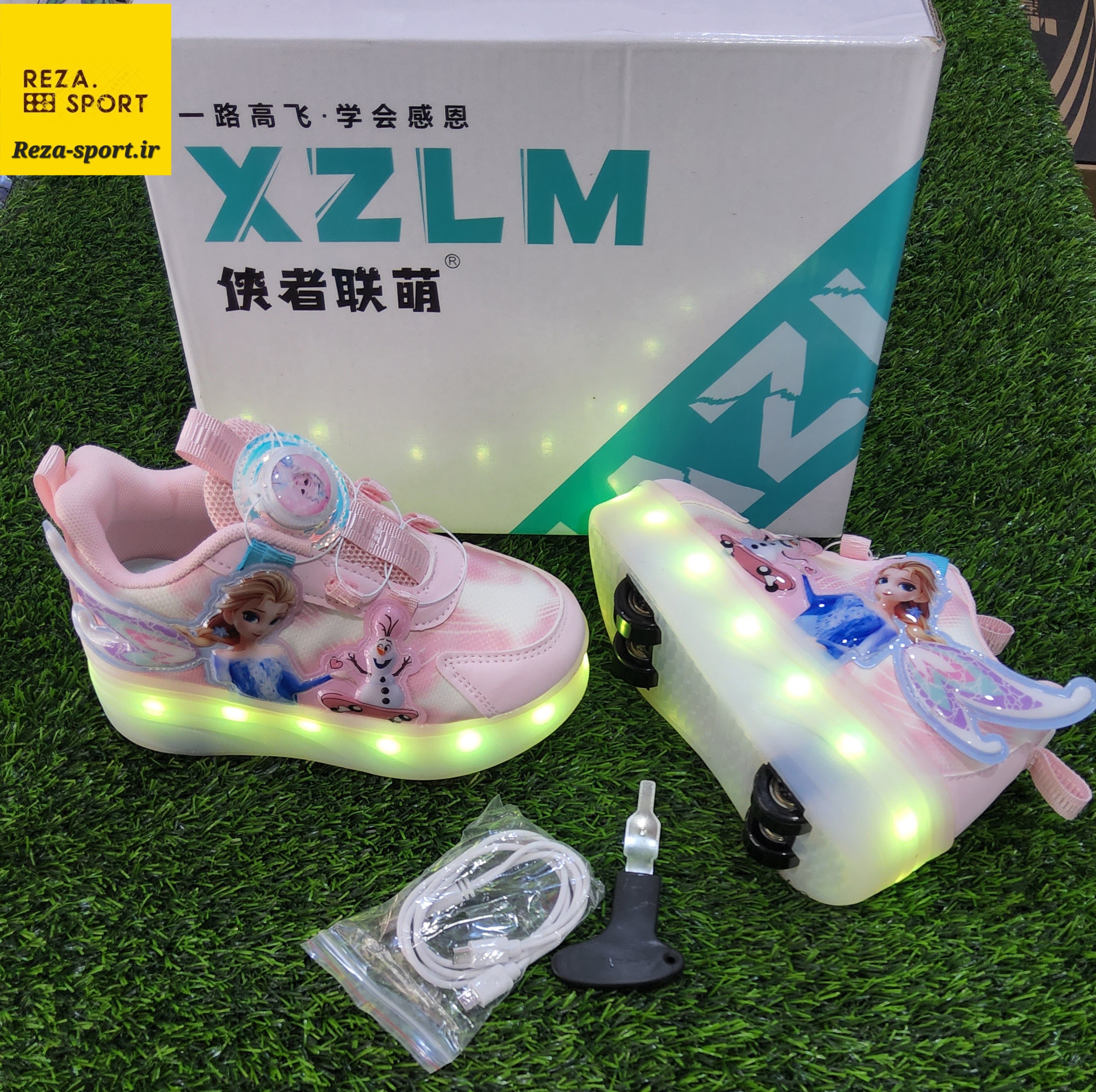 کفش اسکیتی چراغ دار وارداتی دخترانه وپسرانه برند ROLZOR سایز میانه