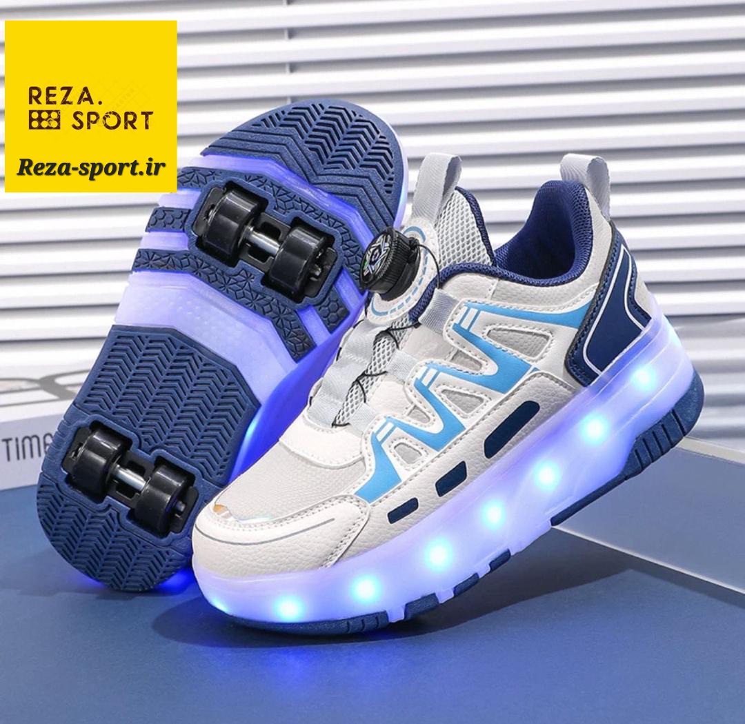کفش اسکیتی چراغ دار وارداتی پسرانه و دخترانه طرح چهارچرخ سایز ۲۹ تا ۳۴