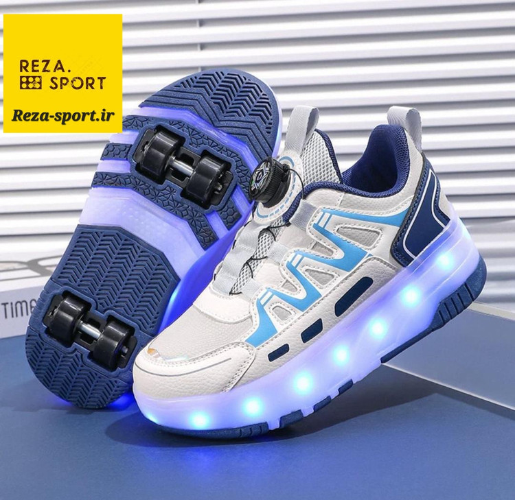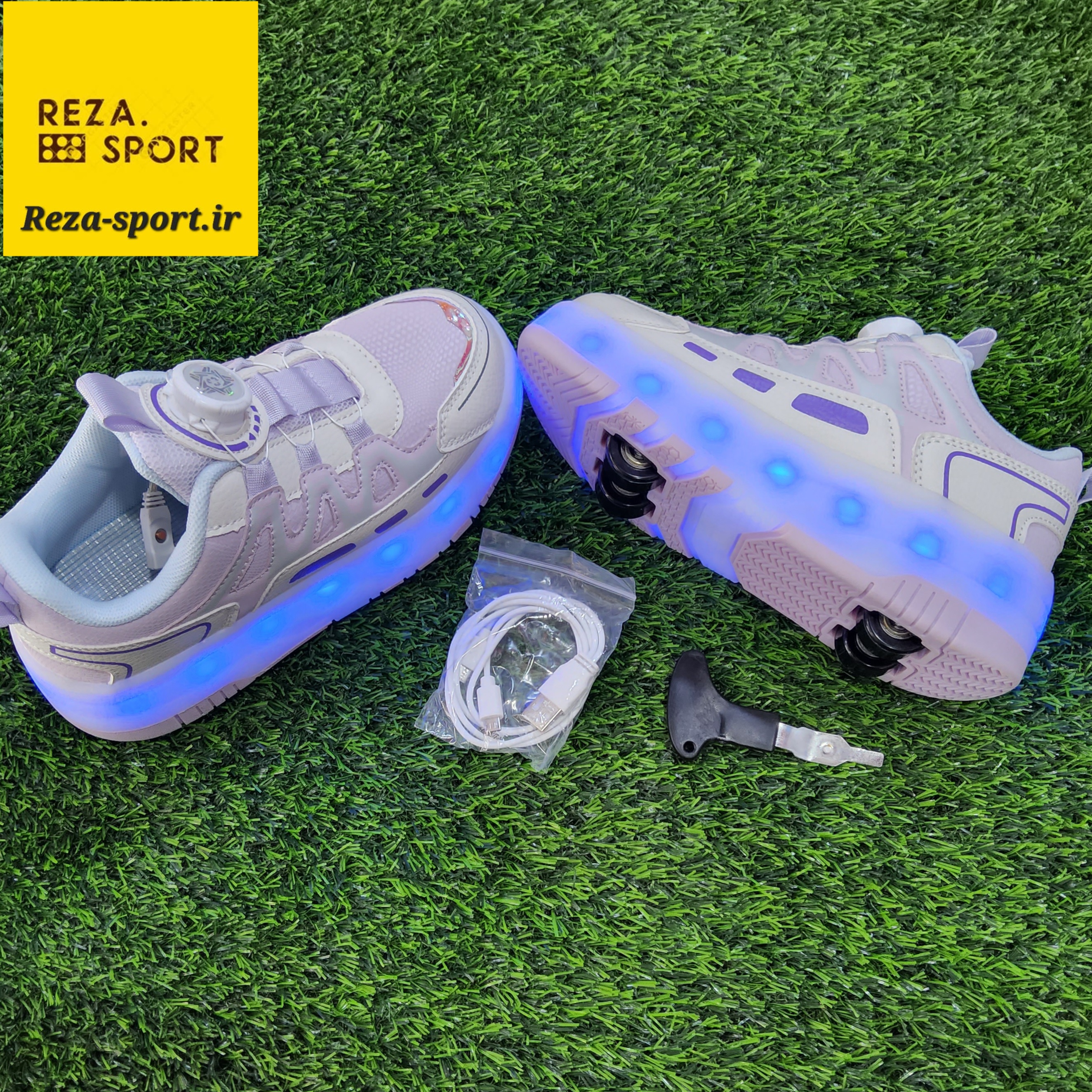 کفش اسکیتی چراغ دار وارداتی دخترانه وپسرانه چهارچرخ سایز میانه