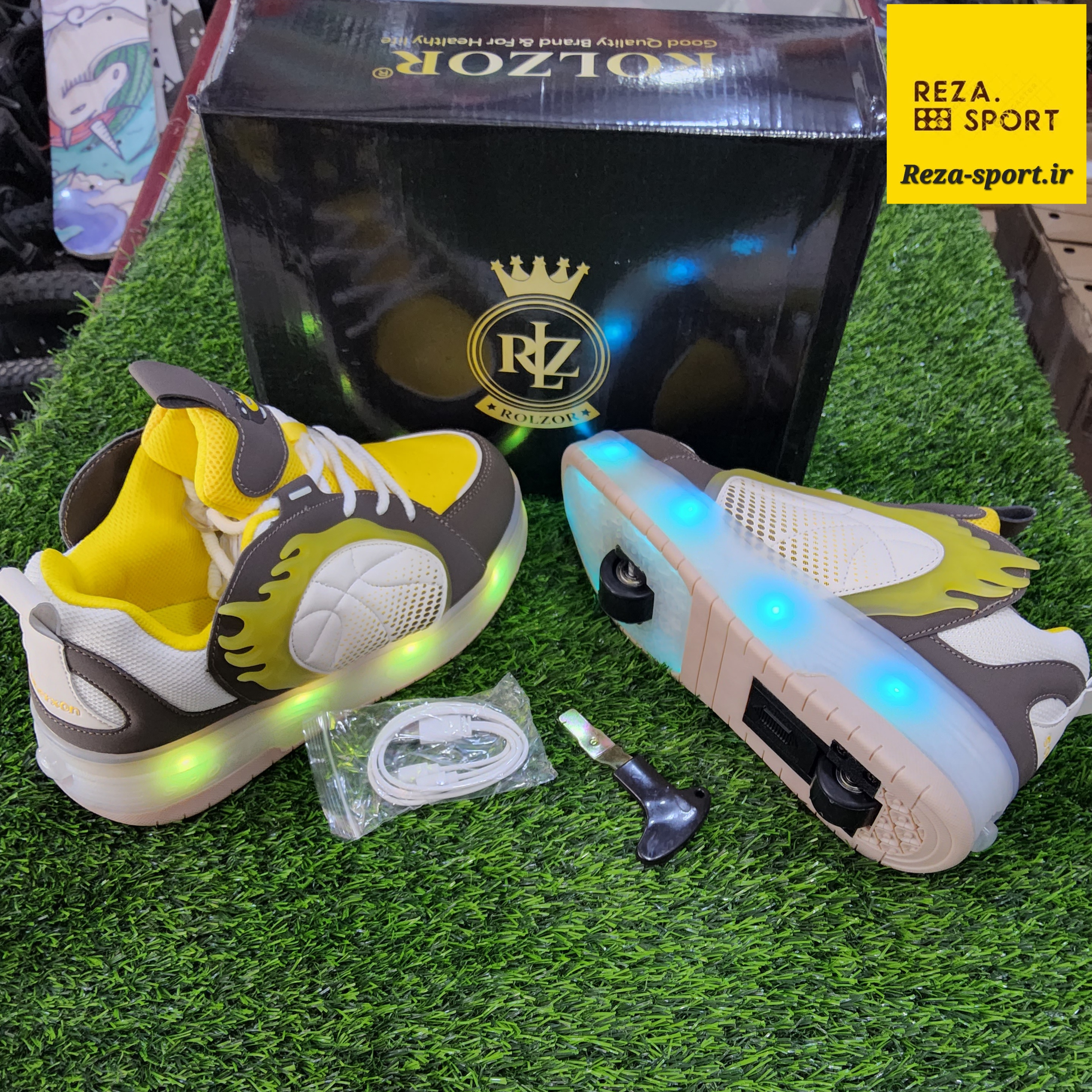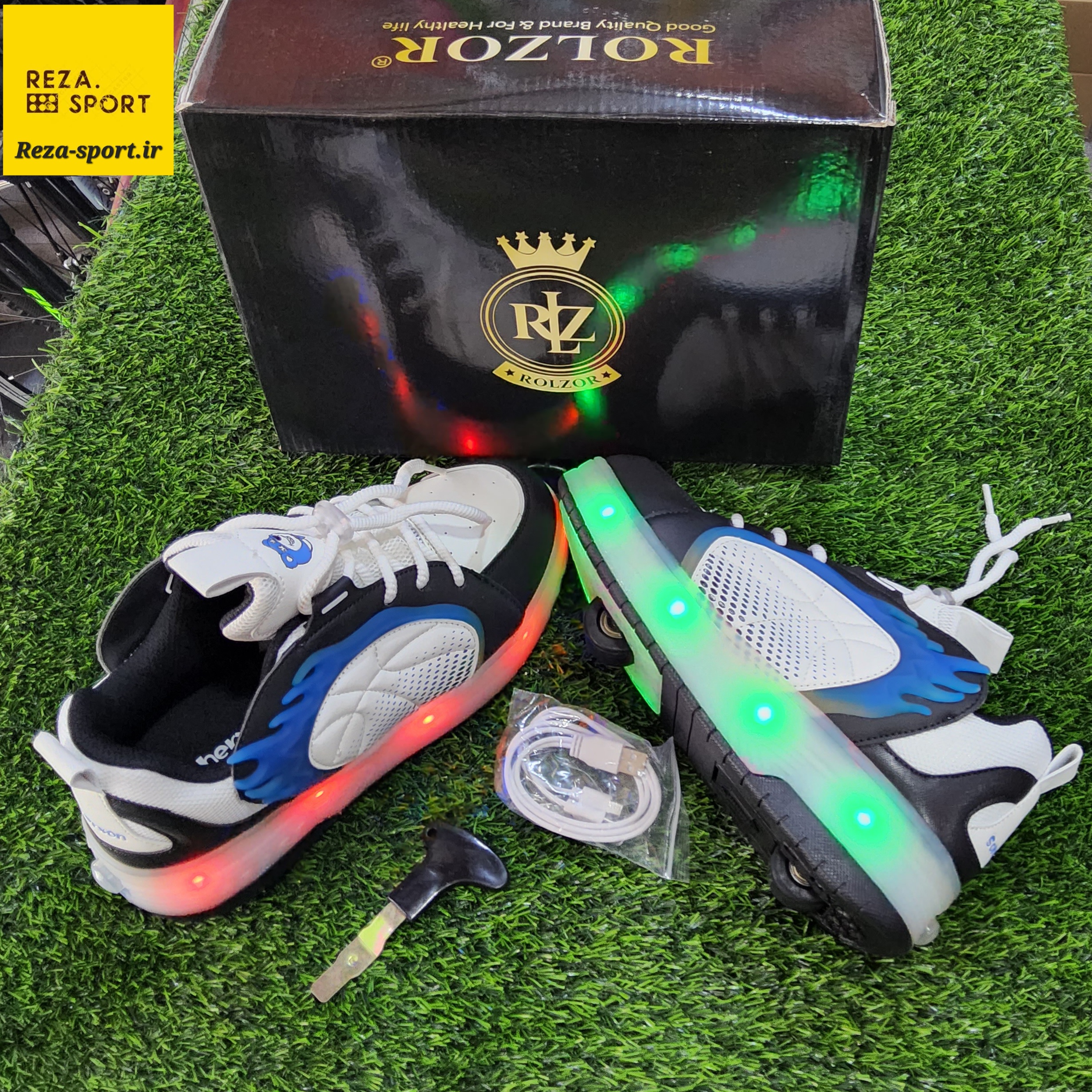 کفش اسکیتی چراغ دار وارداتی دخترانه وپسرانه برند ROLZOR سایز میانه