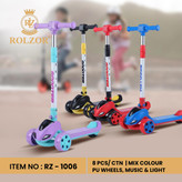امکانات : چراغ روی پنل دسته ، چراغ روی طرح جلوی اسکوتر ، موزیکال ، دارای ترمز روی چرخ عقب