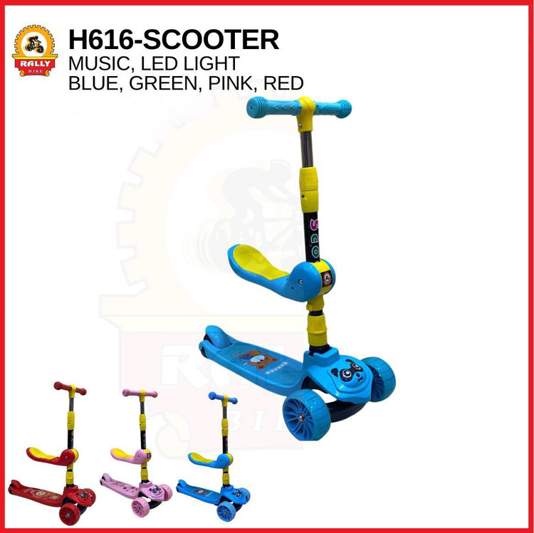 صندلی تاشو ، چراغ زیر بدنه اسکوتر ، موزیکال ، دارای ترمز روی چرخ عقب