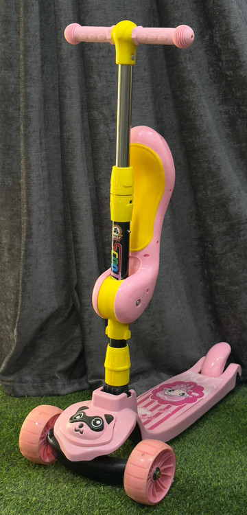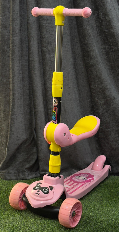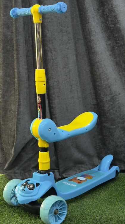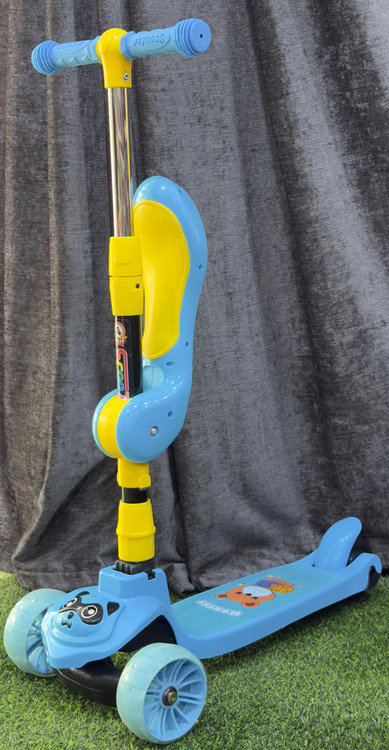 1. **صندلی تاشو**: این اسکوتر مجهز به صندلی تاشوست که به کودک اجازه میده هم بهصورت نشسته و هم ایستاده از اون استفاده کنه. این قابلیت برای کودکان کوچکتر که تازه شروع به یادگیری تعادل کردن هستن، بسیار مفیده.